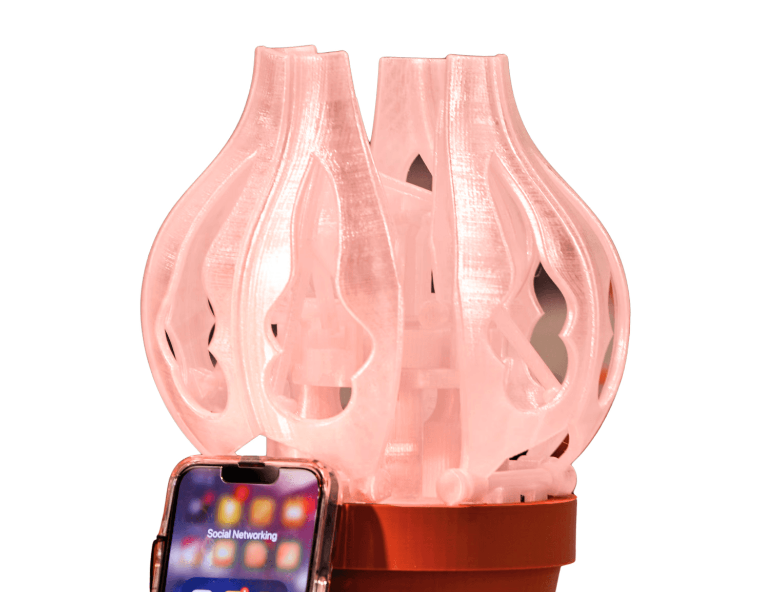 The design was driven by the flower as the core interactive element as the idea was for it to "bloom" as the flower in the app grew. Its scale and form were established first, before developing the surrounding pot and docking structure to ensure the overall form supported both phone placement and internal components.