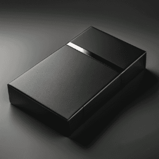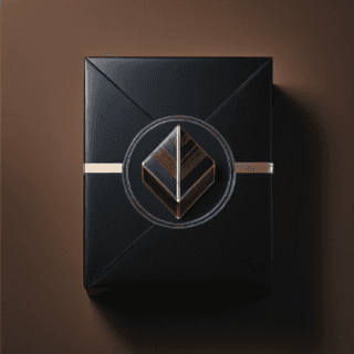 Prompt 5: minimalistic, all-black packaging box with a subtle logo for a chocolate bar
