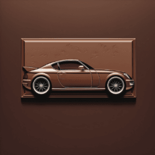 Prompt 1: minimalistic chocolate bar with a car engraved into it