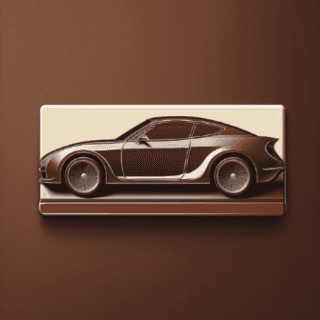 Prompt 3: simple rectangle chocolate bar with the side profile of a coupe styled car engraved into the top side.